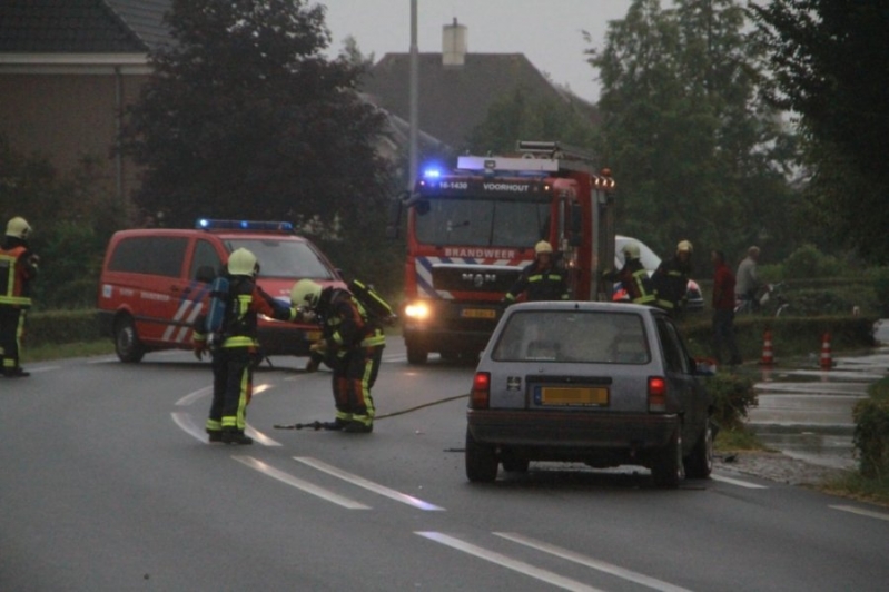 p de Jacoba van Beierenweg in Voorhout zijn donderdagmiddag twee auto's op elkaar gebotst. Door de klap kwam een van de auto's op een gasverdeelstation terecht, waardoor een gaslek ontstond.