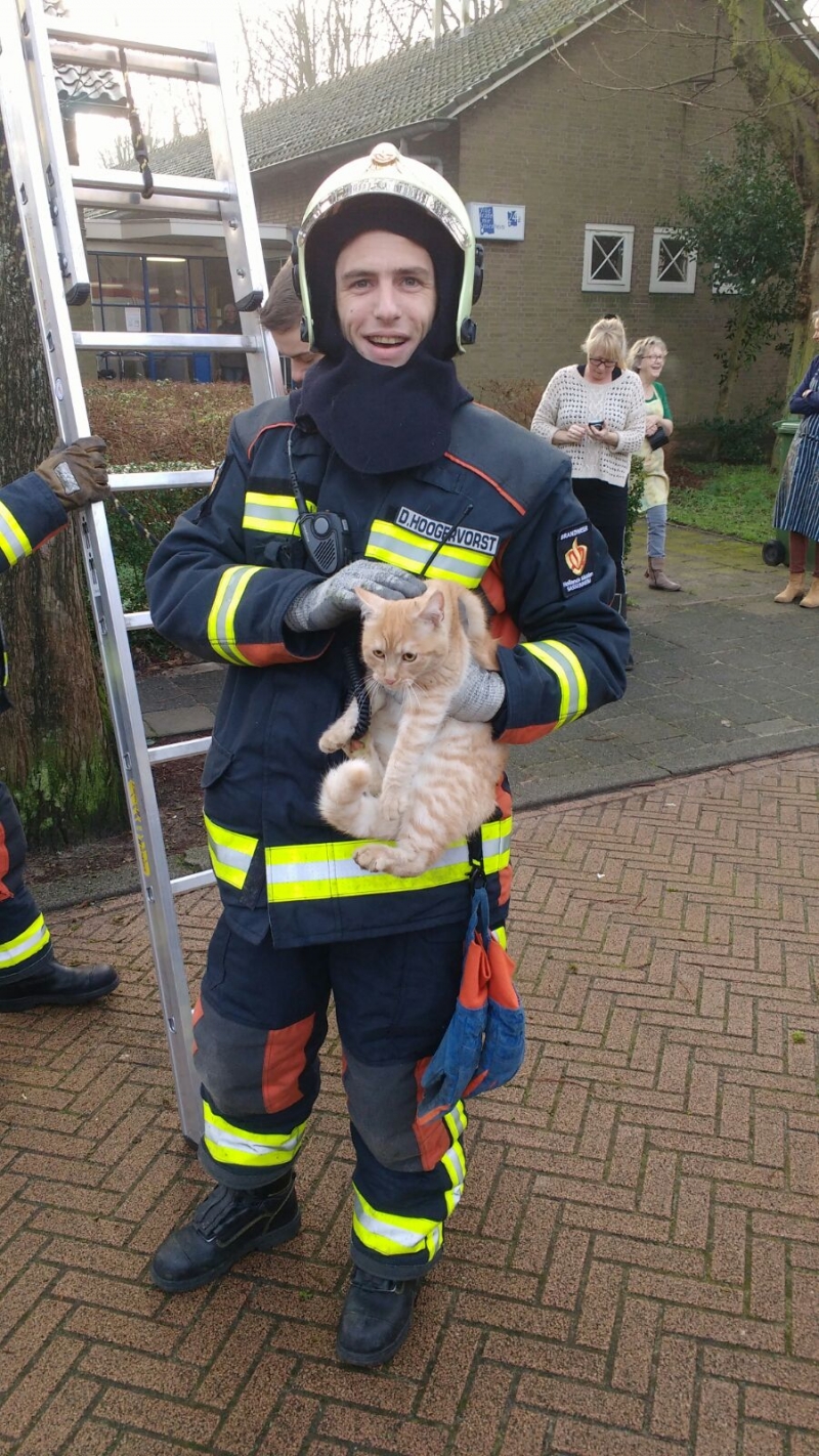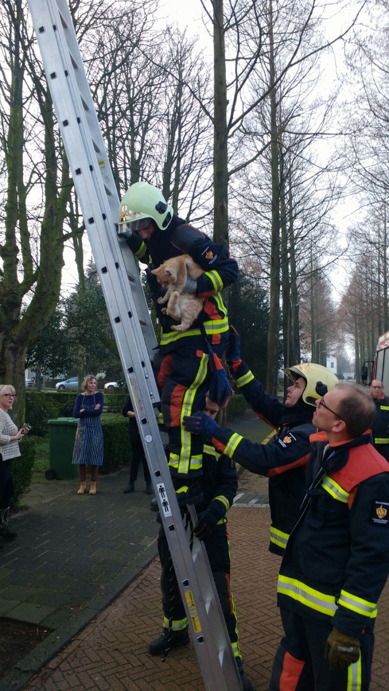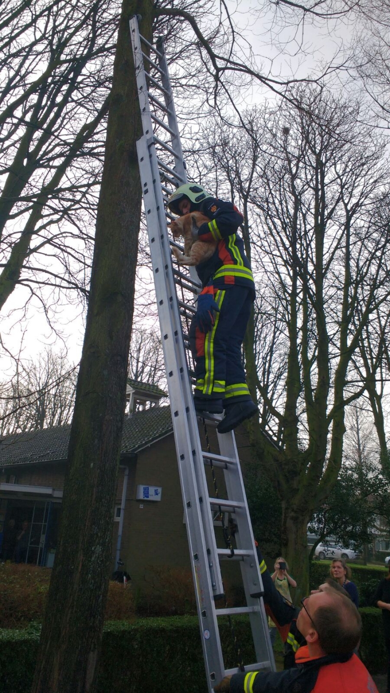Brandweer Sassenheim heeft een kat uit de boom gehaald die al een paar uur in de boom zat.